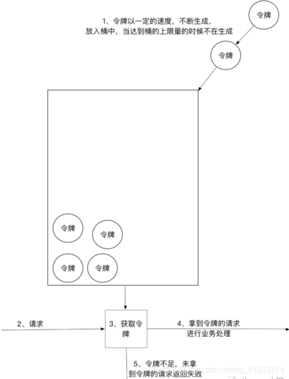 (4)令牌桶算法:应该算是最灵活的限流算法了,基本原理直接看下图:
