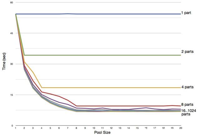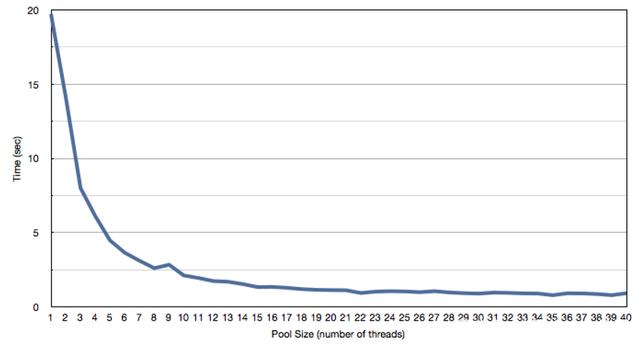 上图是 IO 密集型任务的一个测试,是在双核处理器上开不同的线程数(从 1 到 40)来测试对程序性能的影响,可以看到线程池数量达到 20 之后,曲线逐渐水平,说明开再多的线程对程序的性能提升也毫无帮助。