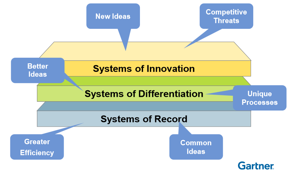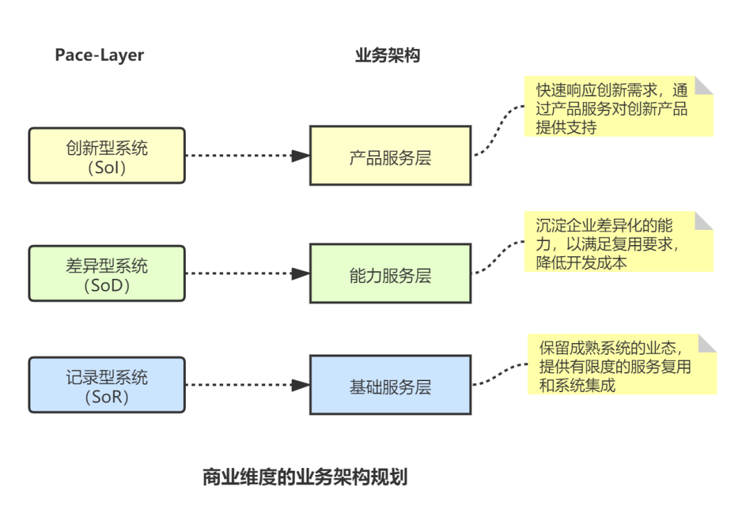 从商业维度,Gartner定义了Pace-Layered Architecture,如下图所示: