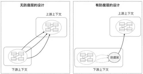 Open Host Service 相当于微服务之间的协作关系;防腐层(Anti-Corruption)是一种高度防御性的策略,结合门面(Facade)模式和适配器(Adapter)设计模式,将模型与其需要集成的其他模型隔离开来,以防止被频繁变更或不稳定的依赖模型污染和腐败。