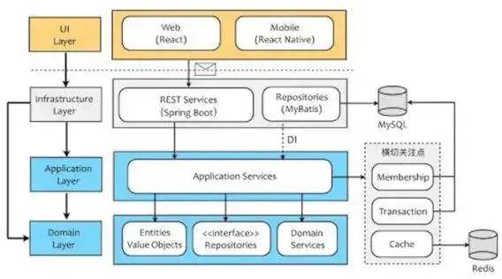 在架构方面,通过分层架构来隔离关注点,将领域实现独立出来,利于领域模型的单一性与稳定性;