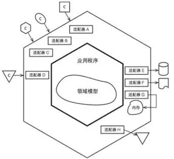 一个端口对应多个适配器,对应多个外部系统,对这一类外部系统的归纳,不同的外部系统需要使用不同的适配器,适配器负责对协议进行转换。六边形架构有一个明确的关注点,一开始就强调把重心放在业务逻辑上,外部的驱动逻辑或被驱动逻辑存在可变性、可替换性,依赖具体技术细节。而核心的业务领域相对稳定,体现应用的核心价值。六边形的六并没有实质意义,只是为了留足够的空间放置端口和适配器,一般端口数不会超过 4 个。适配器可以分为 2 类,“主”、“从”适配器,也可称为“驱动者”和“被驱动者”。