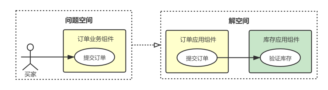 领域驱动进行的业务分解,既是对问题空间的探索,又自然地暗合确定解决方案的思路。由于有清晰的边界存在,这一做法并未混淆问题空间与解空间,却天然地搭建了一种映射方法,使得我们能够以较小成本将业务架构映射为IT架构中的应用架构。