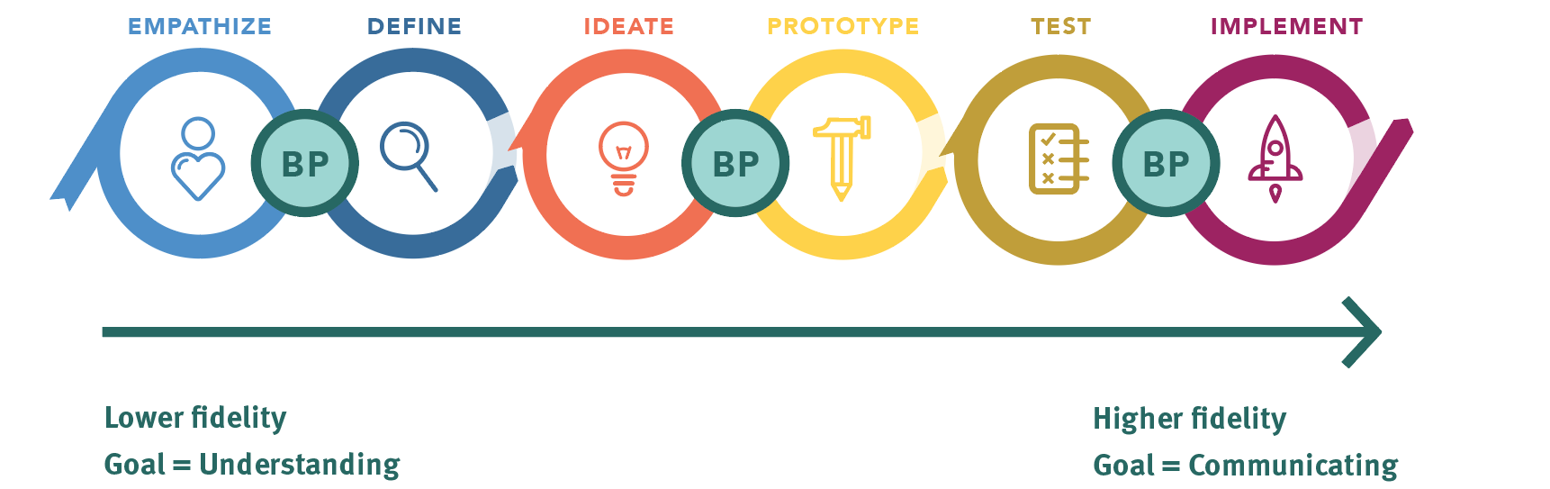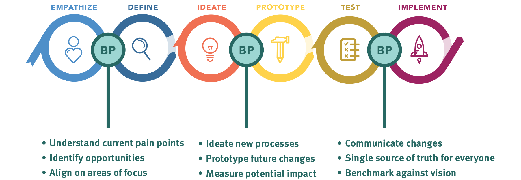 例如,考虑设计思考过程。可以在移情和定义阶段使用服务蓝图来了解服务概况。在流程后期,它可以用作构思和原型化内部流程可能发生变化的方法。最后在实施时,考虑使用服务蓝图来传达理想服务状态的愿景和目标。