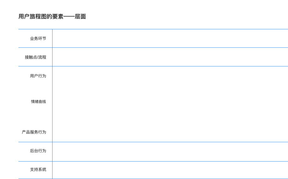 由此可知,产品和用户交互的过程,体现在“用户旅程图”中,就形成了自上而下、由外及里、从浅入深的层次,我权且将它定义为“层面”,这是用户旅程图的要素之一。