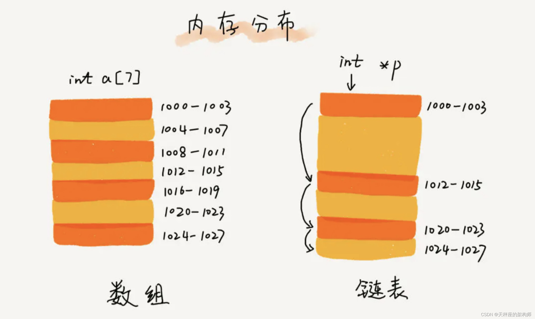 数组和链表是所有数据结构的基础,其差别在于数据在内存中分步是连续的,详情请参考:参考1: 数据结构之数组和链表的区别_Jasminexjf的博客-CSDN博客_数组与链表的区别第一题便是数据结构中的数组和链表的区别数组(Array)一、数组特点:所谓数组,就是相同数据类型的元素按一定顺序排列的集合;数组的存储区间是连续的,占用内存比较大,故空间复杂的很大。但数组的二分查找时间复杂度小,都是O(1);数组的特点是:查询简单,增加和删除困难;1.1 在内存中,数组是一块连续的区域1.2 数组需要预留空间 在使用前需要提前申请所占内存的大小,...https://blog.csdn.net/Jasminexjf/article/details/88847127