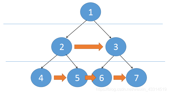 队列中保存了第i层节点的信息,我们利用这个特点,将队列中的元素都串联一遍就可以了。