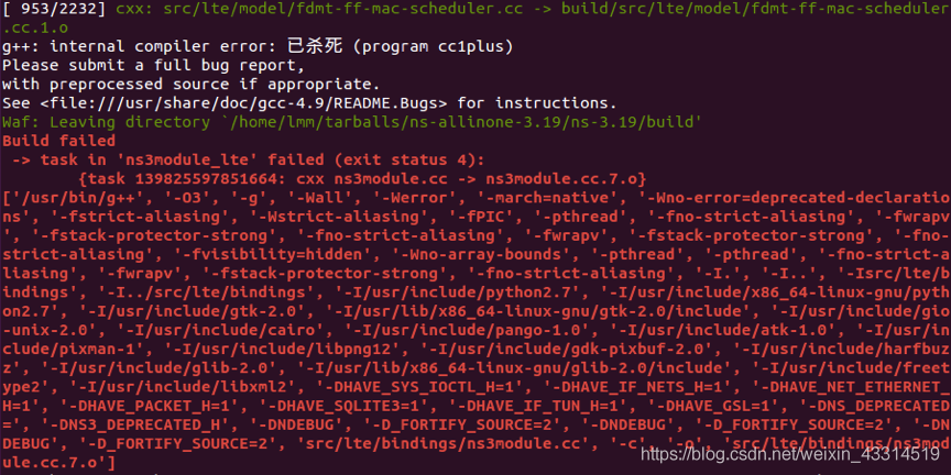 解决方法:关闭虚拟机,在虚拟机“配置”将内存从2048MB修改为4096MB,再打开虚拟机,然后再重新编译,成功。如果还是失败,继续加大内存!!注意电脑上别开太多软件!