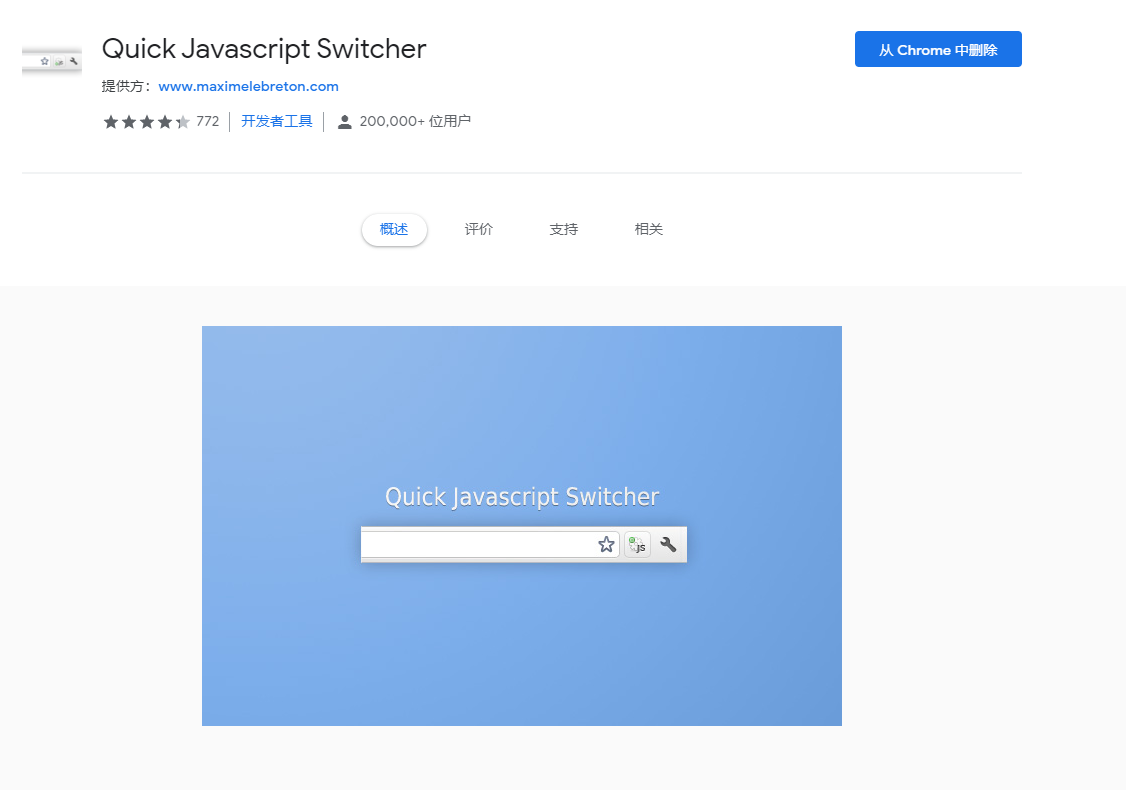或者直接打开链接:https://chrome.google.com/webstore/detail/quick-javascript-switcher/geddoclleiomckbhadiaipdggiiccfje?hl=zh-CN