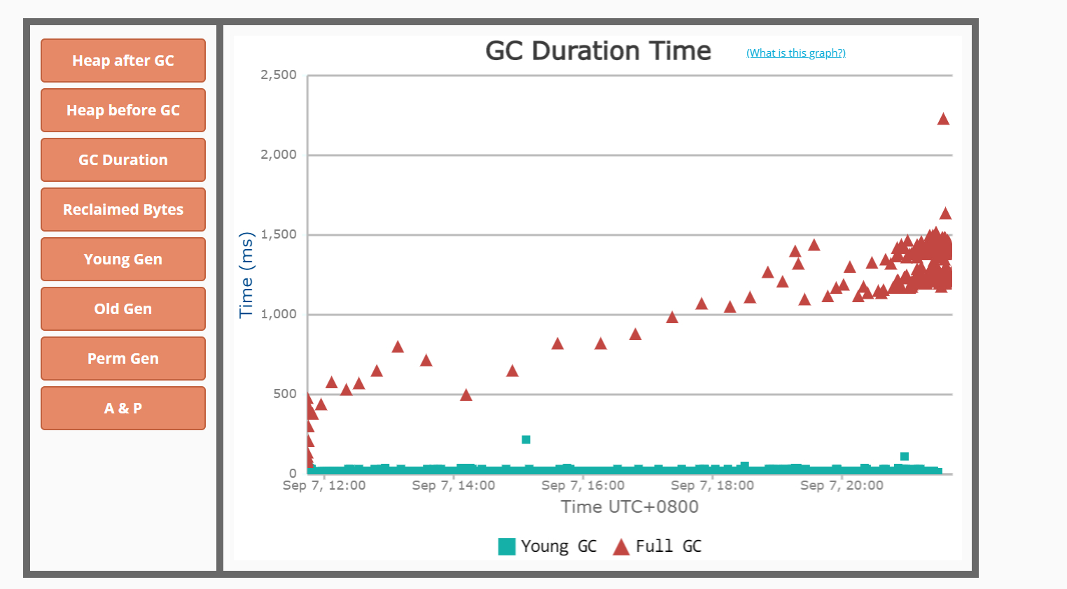 接前面的内容,这个情况下,我们自然而然想到去查看gc 的具体情况。