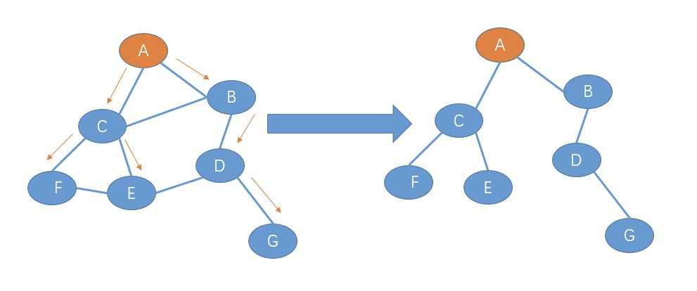 那么,如何构造一颗生成树呢?下面提供一种基于某个中心的方法来建立一颗生成树。注意,是生成树,不是最小生成树。