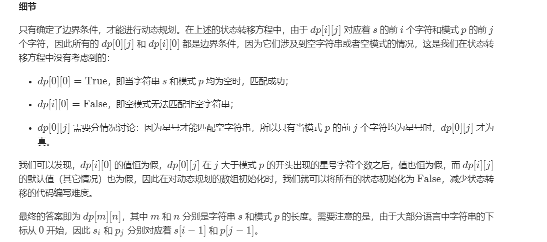 我们用 dp[i][j]dp[i][j]dp[i][j]表示字符串 s 的前 i 个字符和模式 p 的前 j个字符是否能匹配。在进行状态转移时,我们可以考虑模式 p的第 j个字符 pjp_jpj,与之对应的是字符串 s 中的第 i 个字符 sis_isi: