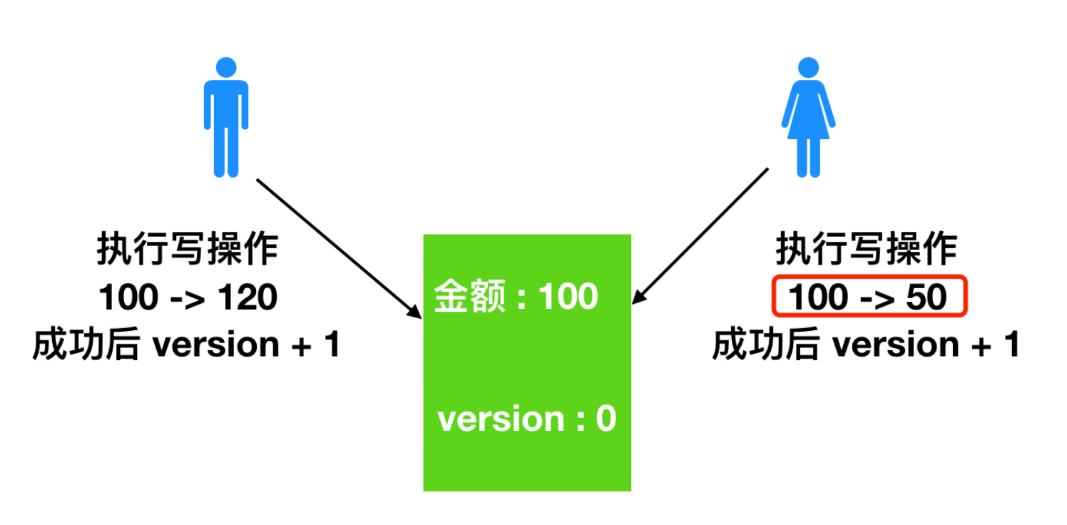 这样,就避免了女柜员 用基于 version = 0 的旧数据修改的结果覆盖男操作员操作结果的可能。