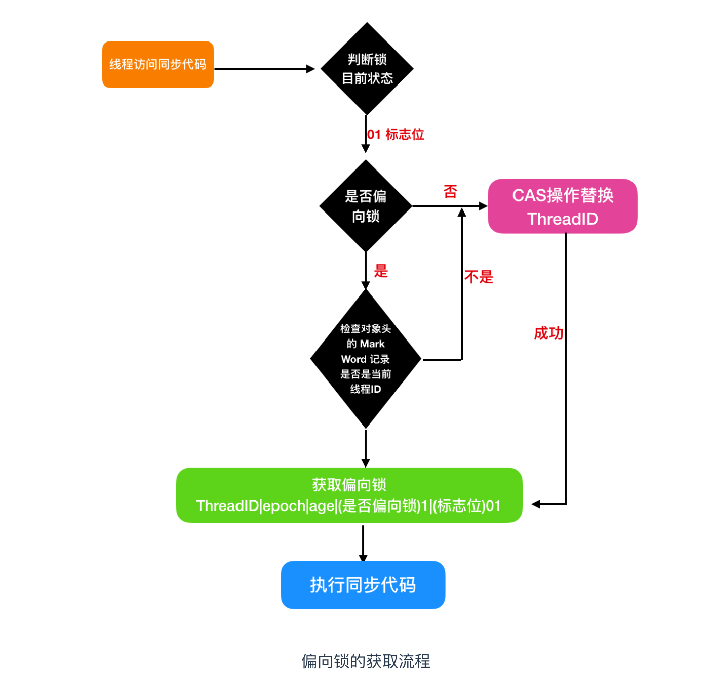 在当前线程的栈中分配锁记录,拷贝对象头中的 MarkWord 到当前线程的锁记录中,执行 CAS 加锁操作,会把对象头 Mark Word 中锁记录指针指向当前线程锁记录,如果成功,获取轻量级锁,执行同步代码,然后执行第3步,如果不成功,执行下一步