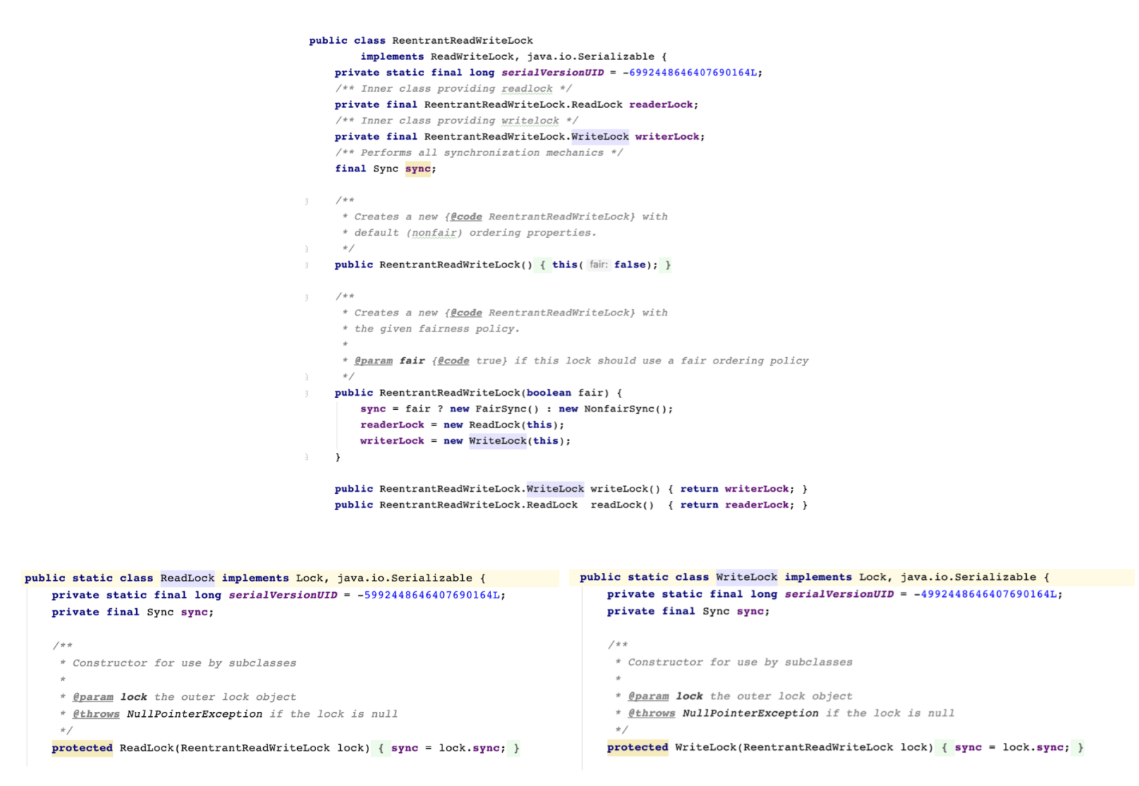 根据 JavaDoc 的注释可知,如果是 true 的话,那么就会创建一个 ReentrantLock 的公平锁,然后并创建一个 FairSync ,FairSync 其实是一个 Sync 的内部类,它的主要作用是同步对象以获取公平锁。