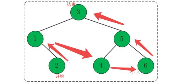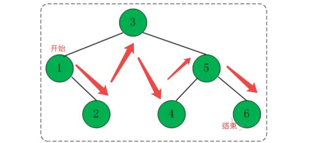 例如下图中二叉树中序遍历节点访问顺序为1 2 3 4 5 6: