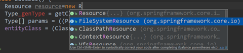 使用后,用于补全的列表,会把与输入的关键字最相关的信息排到最前面,比如这里的 Resource 的实现类会直接过滤出来,很方便吧 O(∩_∩)O~: