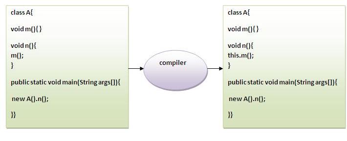 可以使用this关键字调用当前类的方法。如果不使用this关键字,编译器会在调用方法时自动添加此 this 关键字。我们来看看这个例子。
