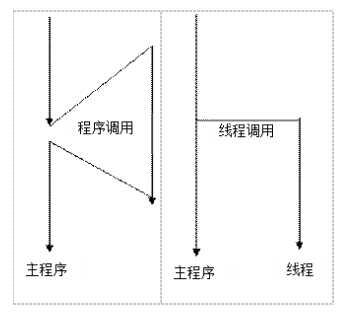 图3.4 程序调用的顺序执行与线程调用的并行执行