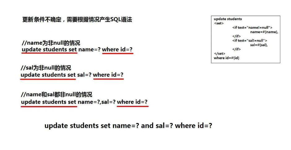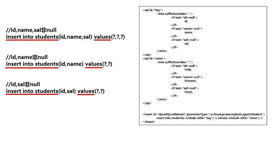 studentDao.insertByConditions(new Student(55, null, null));//name和sal为空