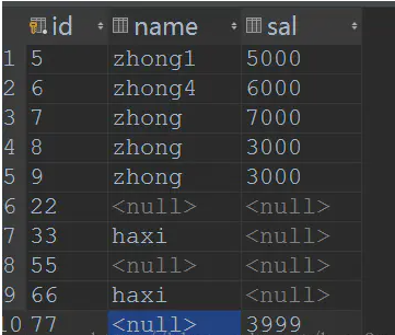 studentDao.insertByConditions(new Student(66, "haxi", null));//sal为空