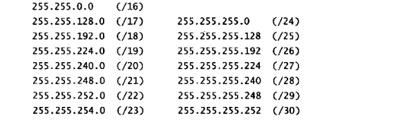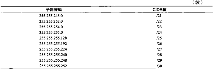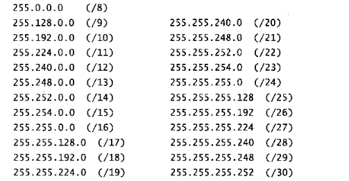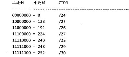 通过下表我们能明确子网掩码和斜杠表示法之间的关系