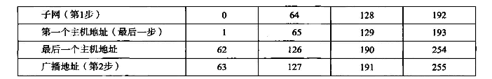 合法的主机地址为子网地址和广播地址之间的数字。要确定主机地址,最简单的方法是写出子网地址和广播地址,这样合法的主机地址就显而易见了。