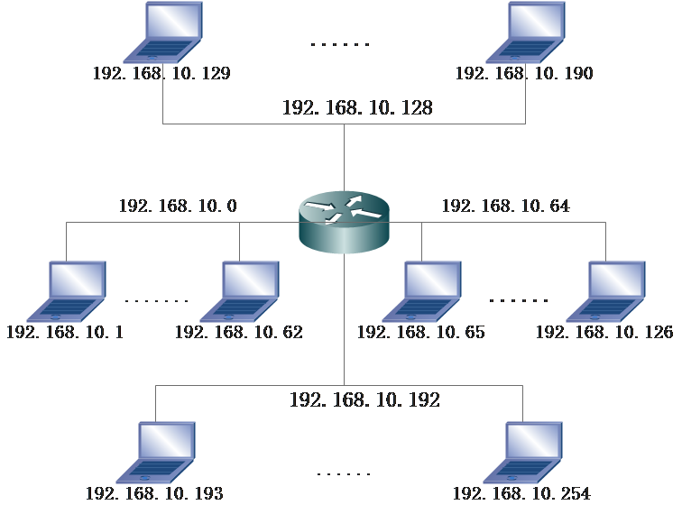 在第二个示例中,我们将使用子网掩码255.255.255.192对网络192.168.10.0进行子网划分。