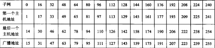 子网掩码=255.255.255.240.合法的主机地址范围是多少呢?