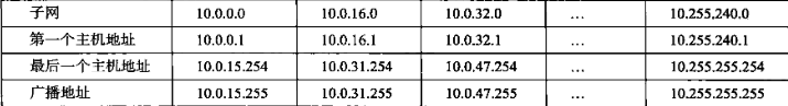子网掩码:就是就是前20位网络地址全为1,主机地址的12位IP地址都是0。所以8个子网的子网掩码是一样的——255.255.11110000.0即255.255.240.0