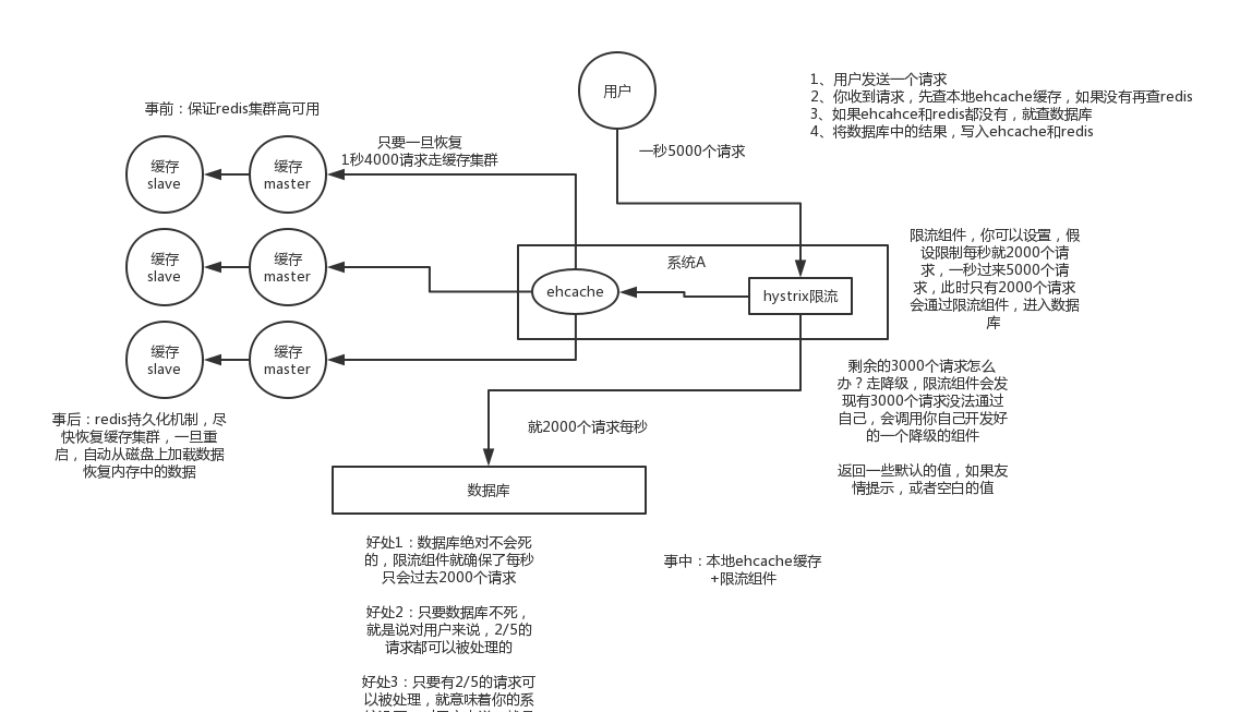 这里还必须做好压力测试,确保恰巧碰上上述情况的时候,还有一个风险,就是突然间大量读请求会在几十毫秒的延时hang在服务上,看服务能不能抗的住,需要多少机器才能抗住最大的极限情况的峰值