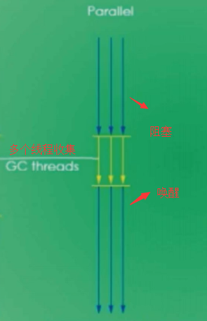 并行垃圾收集器,多个垃圾收集线程并行工作,此时用户线程也是阻塞的,适用于科学计算 / 大数据处理等弱交互场景,也就是说Serial 和 Parallel其实是类似的,不过是多了几个线程进行垃圾收集,但是主线程都会被暂停,但是并行垃圾收集器处理时间,肯定比串行的垃圾收集器要更短