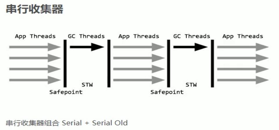 串行垃圾回收器,它为单线程环境设计且值使用一个线程进行垃圾收集,会暂停所有的用户线程,只有当垃圾回收完成时,才会重新唤醒主线程继续执行。所以不适合服务器环境