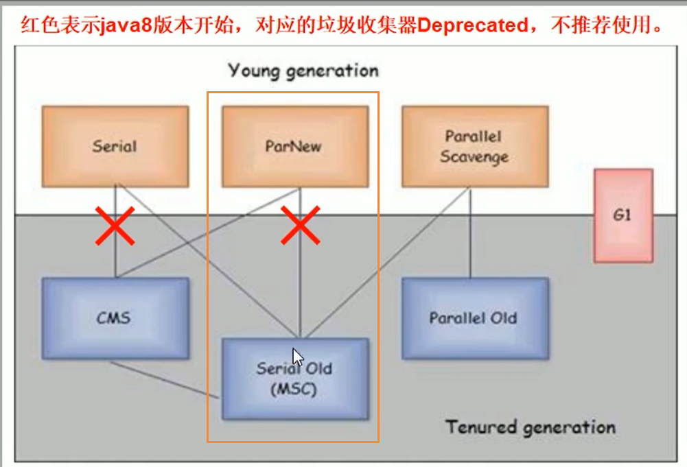 但是会出现警告,即 ParNew 和 Serial Old 这样搭配,Java8已经不再被推荐