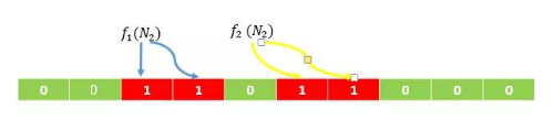 这个时候,假设我们有第三个数N3过来了,我们需要判断N3是否在集合 [N1,N2]中,我们需要做的操作就是,使用f1 和 f2 计算出数组中的地址