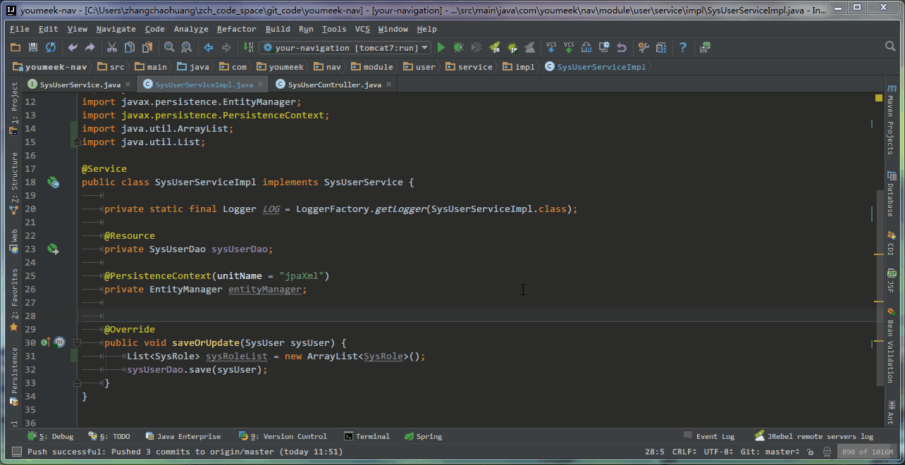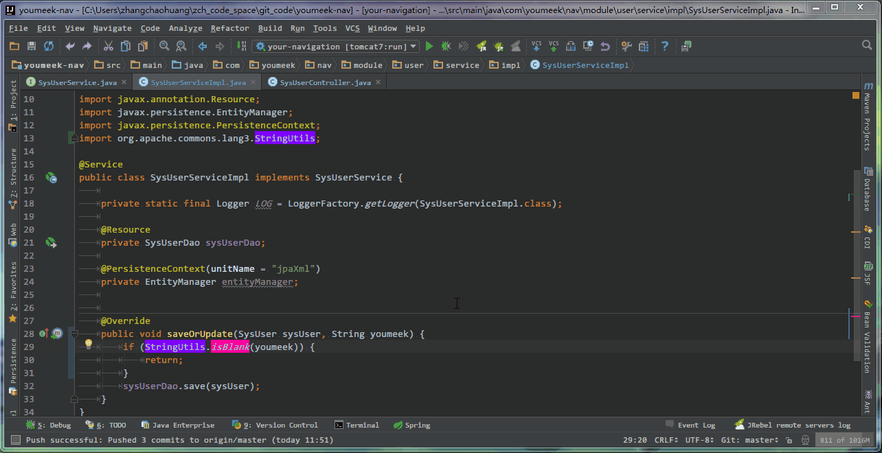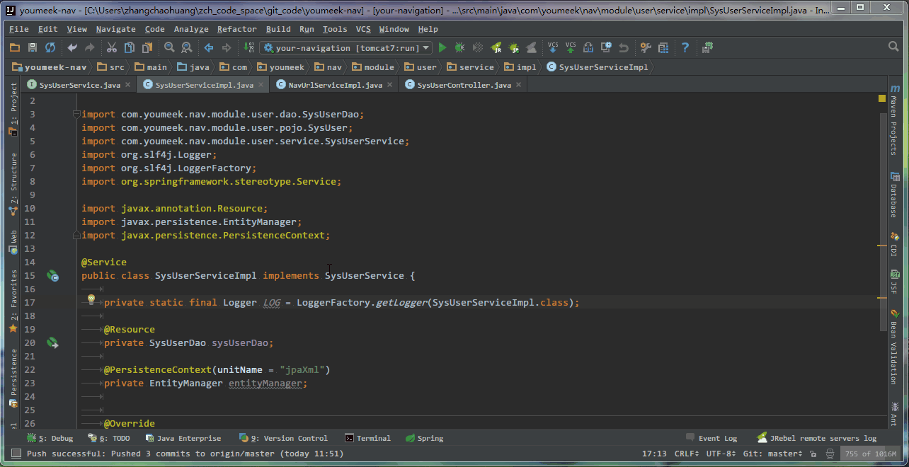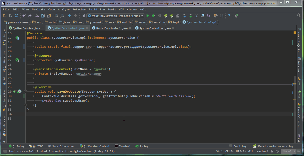 - 在 接口类 中,如果光标当前所在的方法,已经在 接口实现类 中生成了,则此快捷键的效果是跳转。