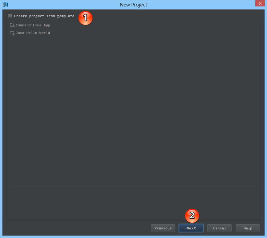 Command Line App会自动创建一个带有 main 方法的类。Java Hello World会自动创建一个带有 main 方法的并且会打印输出 Hello World 的类。