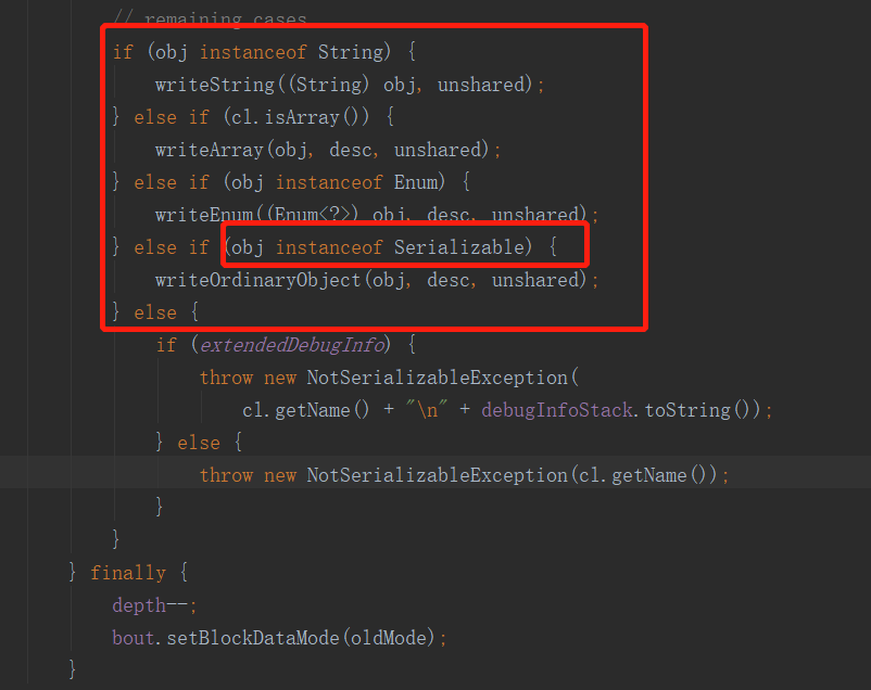 writeObject0 主要实现是对象的不同类型,调用不同的方法写入序列化数据,这里面如果对象实现了Serializable接口,就调用writeOrdinaryObject()方法~