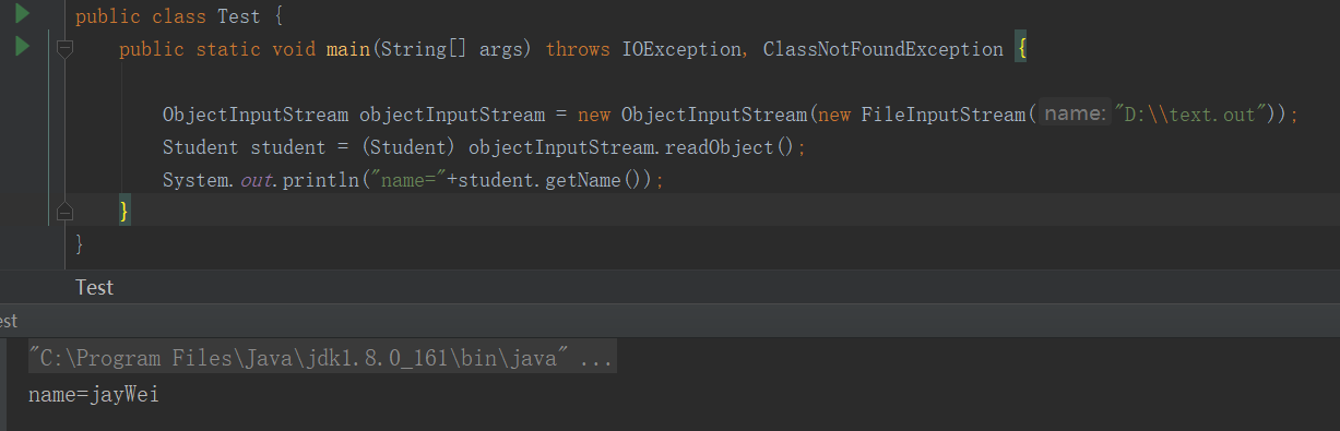 ObjectInputStream objectInputStream = new ObjectInputStream(new FileInputStream("D:\\text.out"));