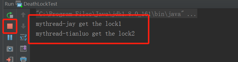 - mythread-tianluo 等待这个锁 “0x00000000d61ae3a0”,这个锁是由于mythread-jay线程持有。