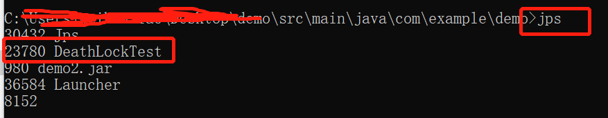 通过使用 jps 命令获取需要监控的进程的pid,我们找到了java23780 DeathLockTest