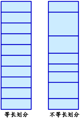 **说明:**我们对物理内存有不同的划分,一种是等长的划分,一种是不等长的划分。