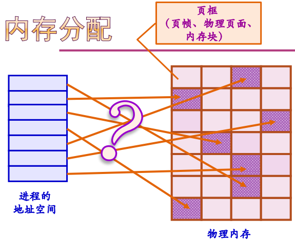 而右边的是多处理器系统中有多个进程需要进入物理内存执行,这里要解决的问题就是,如何将进程地址空间合理的装载到物理内存中,如何合理的分配使用内存,使得每个进程能正确执行。