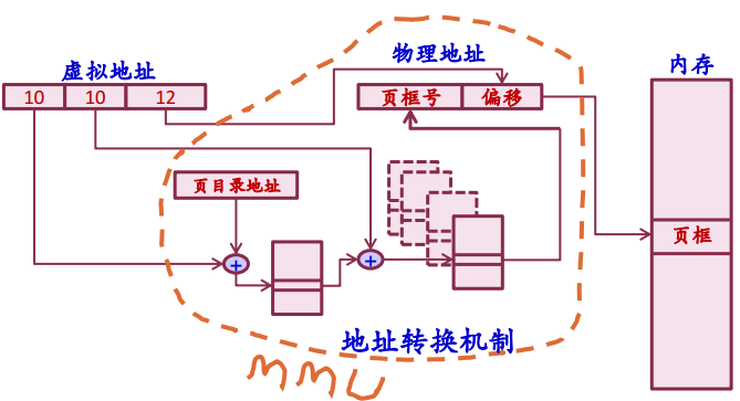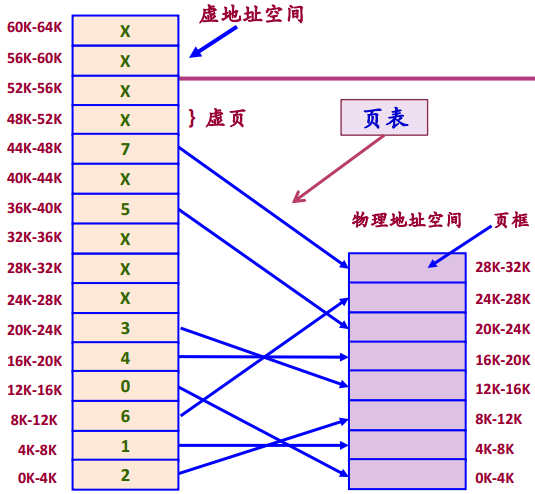 这是逻辑地址空间上的称谓。- 内存空间按同样大小划分为大小相等的区域,称为页帧(