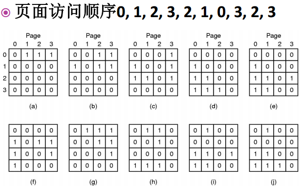 * 每个页表项中有一个字段:记录该页面最后一次被访问的时间-