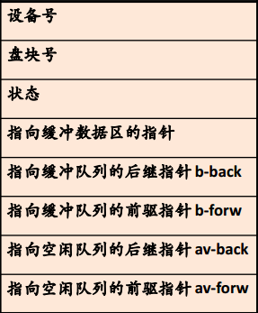 - 状态标识缓冲区的当前状态:忙/闲、上锁/开锁、是否延迟写、数据有效性等