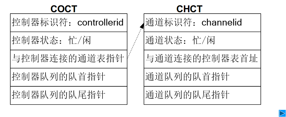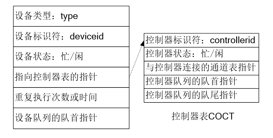 - 系统为每一个控制器都配置了一张记录本控制器情况的控制器控制表(COntroler Control Table,COCT)。