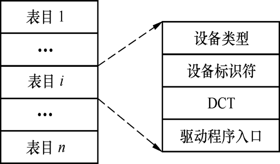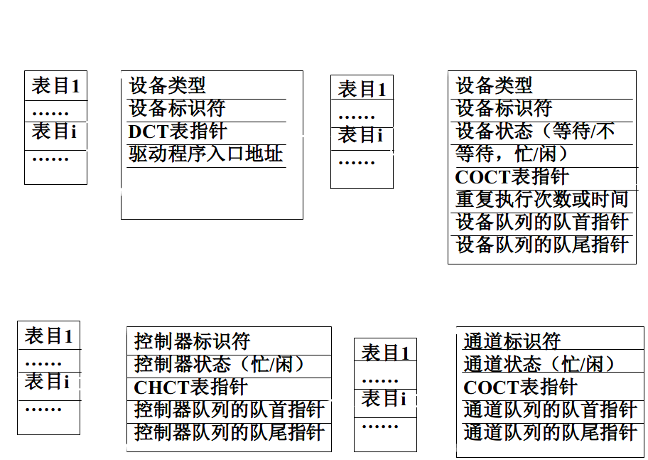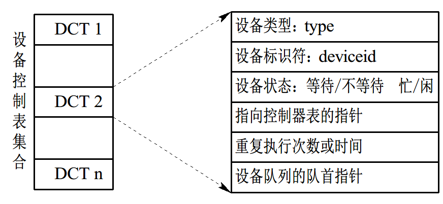 - 系统为每一个I/O设备都配置了一张用于记录本设备情况的设备控制表(Device Control Table,DCT)。