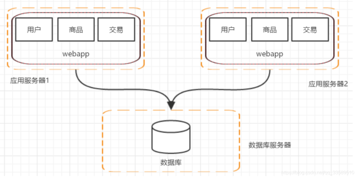 随着业务的发展,业务越来越多,应用的压力越来越大。工程规模 也越来越庞大。这个时候就可以考虑讲应用拆分,按照领域模型讲 我们的用户、商品、交易拆分成多个子系统