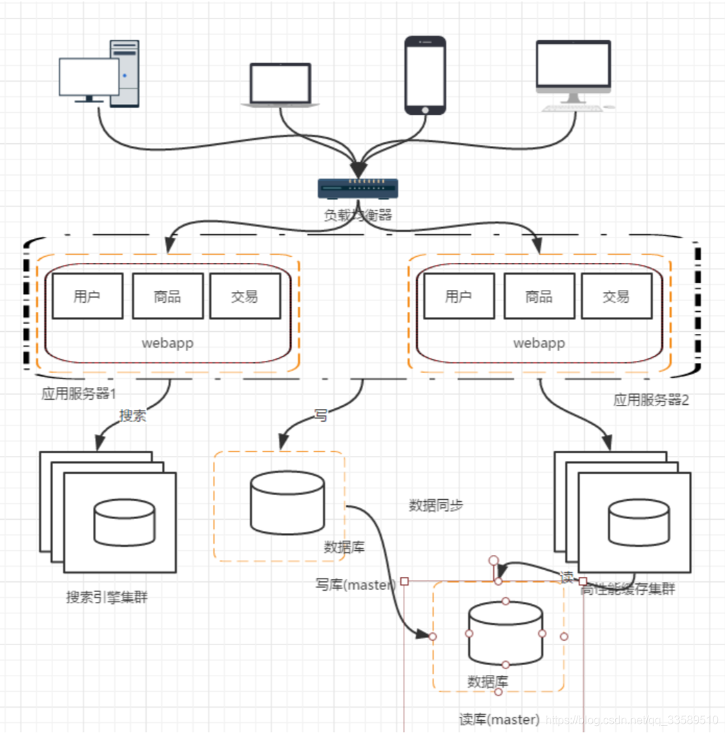 架构演变到这里,并不是终点。上面我们把应用层的性能拉上来了, 但是数据库的负载也在慢慢增大,那么怎么去提高数据库层面的负载呢?